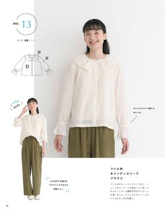 P22に掲載されているもう1つの ”シアー長袖シャツ” は前が全開になっていて、もう1つ中にインナーを着て重ね着を楽しむようなデザインになっています。