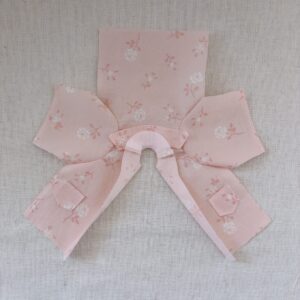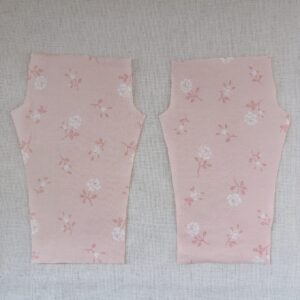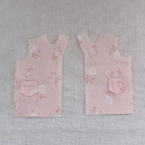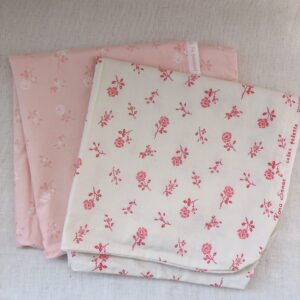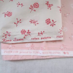 今回は写真奥の淡いピンク地のほうの布地のみで作ることにしました。