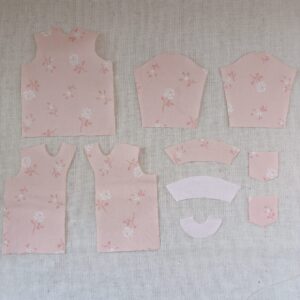 2枚ある他の布地と異なるパーツは衿と衿ぐりの見返し用の綿ローン生地。