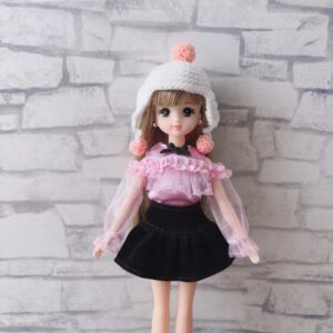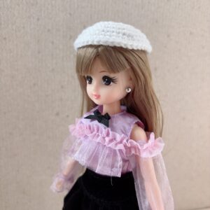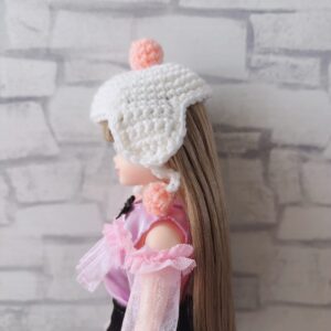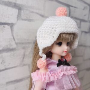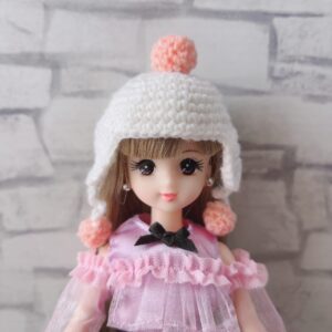 「かぎ針で編む リカちゃんのカジュアルワードローブ」P22掲載の耳当てつきニット帽を作ってみました♪