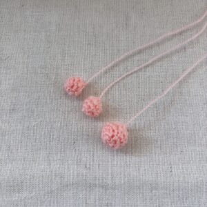 簡単にポンポンが作れる「ポンポンメーカー」という商品もあるようですが、この帽子に必要なポンポンの大きさは直径1.8cm&1.5cmと、とっても小さいので、最小3.8cmのポンポンメーカーでは大きすぎちゃうようです・・・ざんねん。