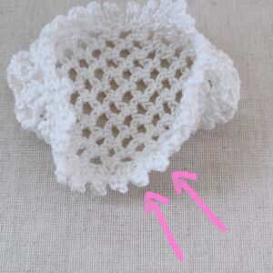 本体全体はくさり編み3目のネット編みですね