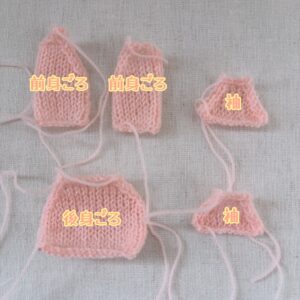 後ろ身ごろ1枚・前が開いているタイプなので、前身ごろは左右2枚・袖2枚。