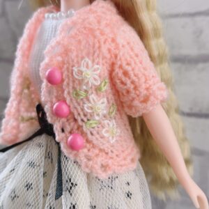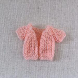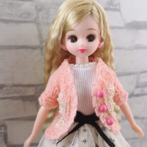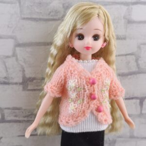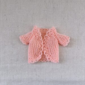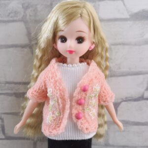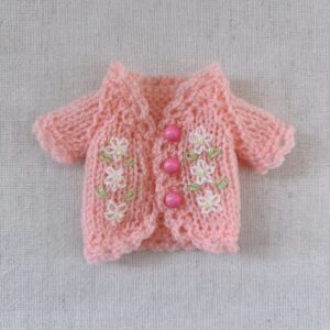 リカちゃんサイズのニット本「リカちゃん 手編みのニットスタイル」には2種類のカーディガンが掲載されていて、先月、そのうちの1つを作りました。