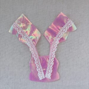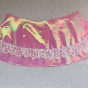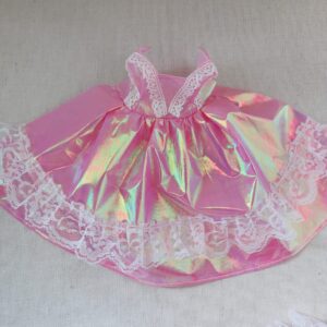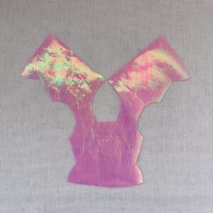材料欄を見ても「ピンクにオーロララメのコーティングをした布」としか書いてなくて、どういう布地かサッパリわからず。