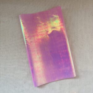 光の反射(?)の関係で写真写りがちょっとビミョーですが・・・オーロラ加工が施されたピンクの布地、多分舞台衣装用か何かのハギレだと思われます。