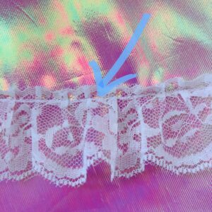 ちなみに・・・最初、レースの向きを逆に(ヒラヒラしている方を胸元側に向けて)付けてしまい1度外したのですが・・・ミシン針の跡がクッキリ&ハッキリ!