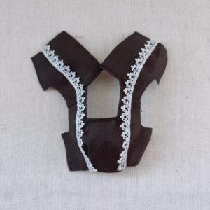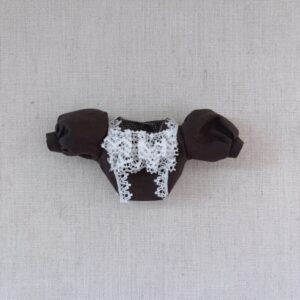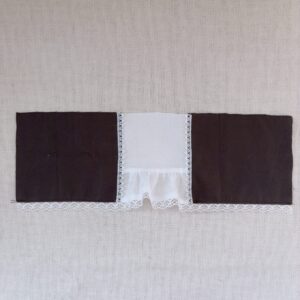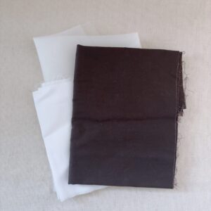 用意した布地は、濃いこげ茶のブロード生地と白の綿ローン生地、見返しに使う白のソフトチュールです。