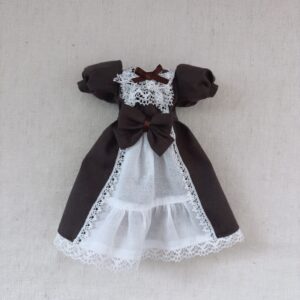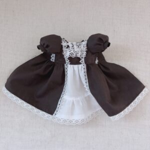濃いこげ茶のブロード生地は、以前「裾フリルタイトドレス」を作った時の余りの布地。