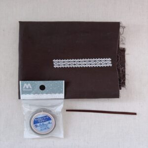 カチューシャの土台は太さ0.6mmのワイヤー、リボン部分はワンピースと同じ濃いこげ茶色のブロード生地を使います。