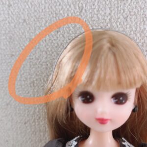 リカちゃんに付けてみても頭の形にフィットせず、浮いてしまいました。