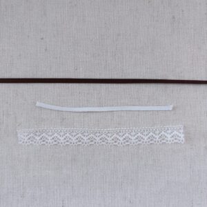 材料は本体のレースはリボンカチューシャと同じくIVORYさんで購入した糸トーションレースの32054番、4コールのゴムテープ、3mm幅のサテンリボンです。