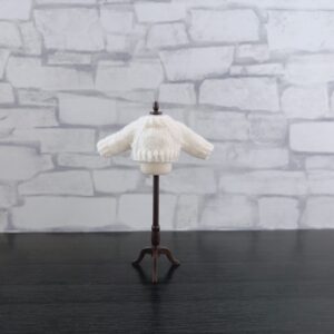パンツにもスカートにも合わせやすい、シンプルなアイボリーの小さなお人形用の長袖ニットです。